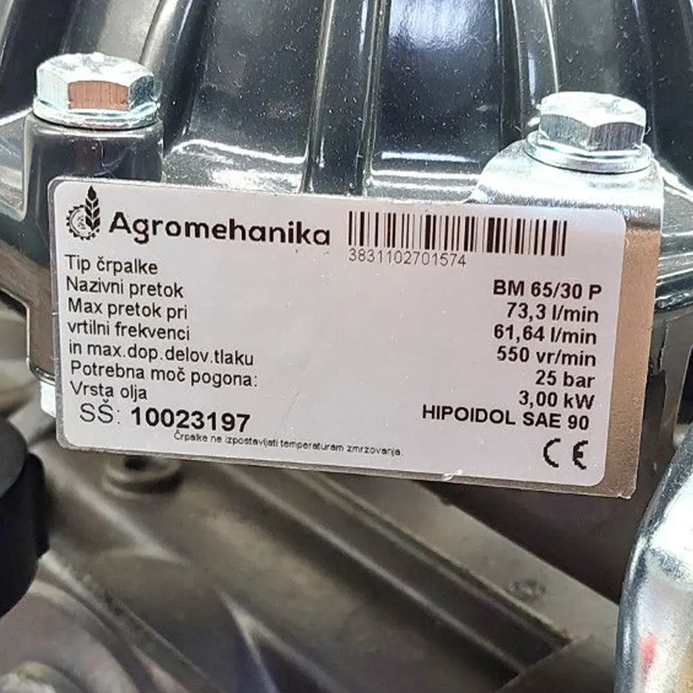 Agromehanika membranska pumpa za prskalice bm 65/30 pogodna za prskanje i zaštitu bilja u poljoprivredi. Glavna karakteristika ovih pumpi je osiguranje visoko kvalitetnog prskanja. Napravljena je od tvornički testiranih materijala.