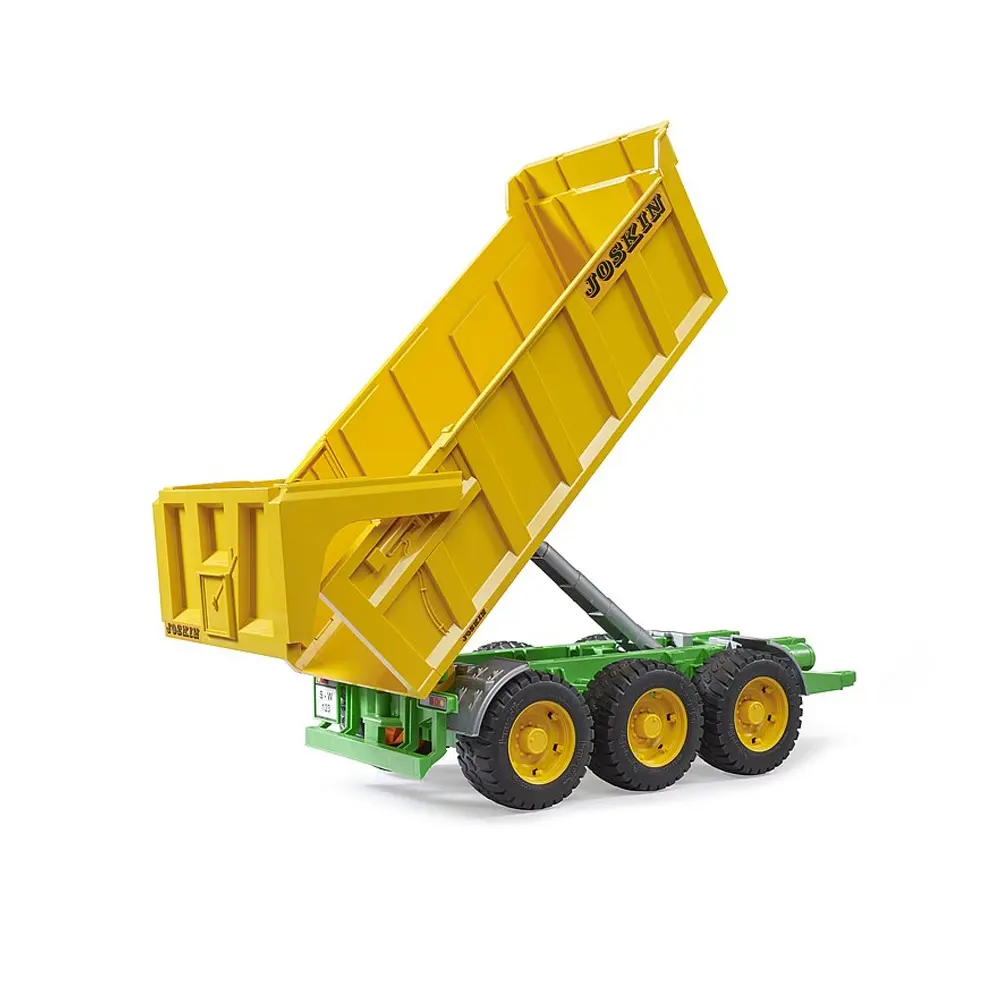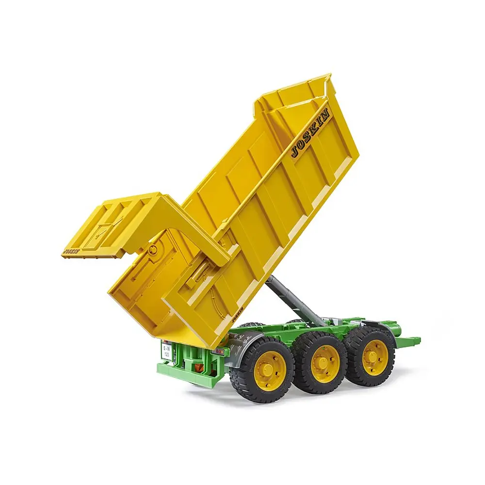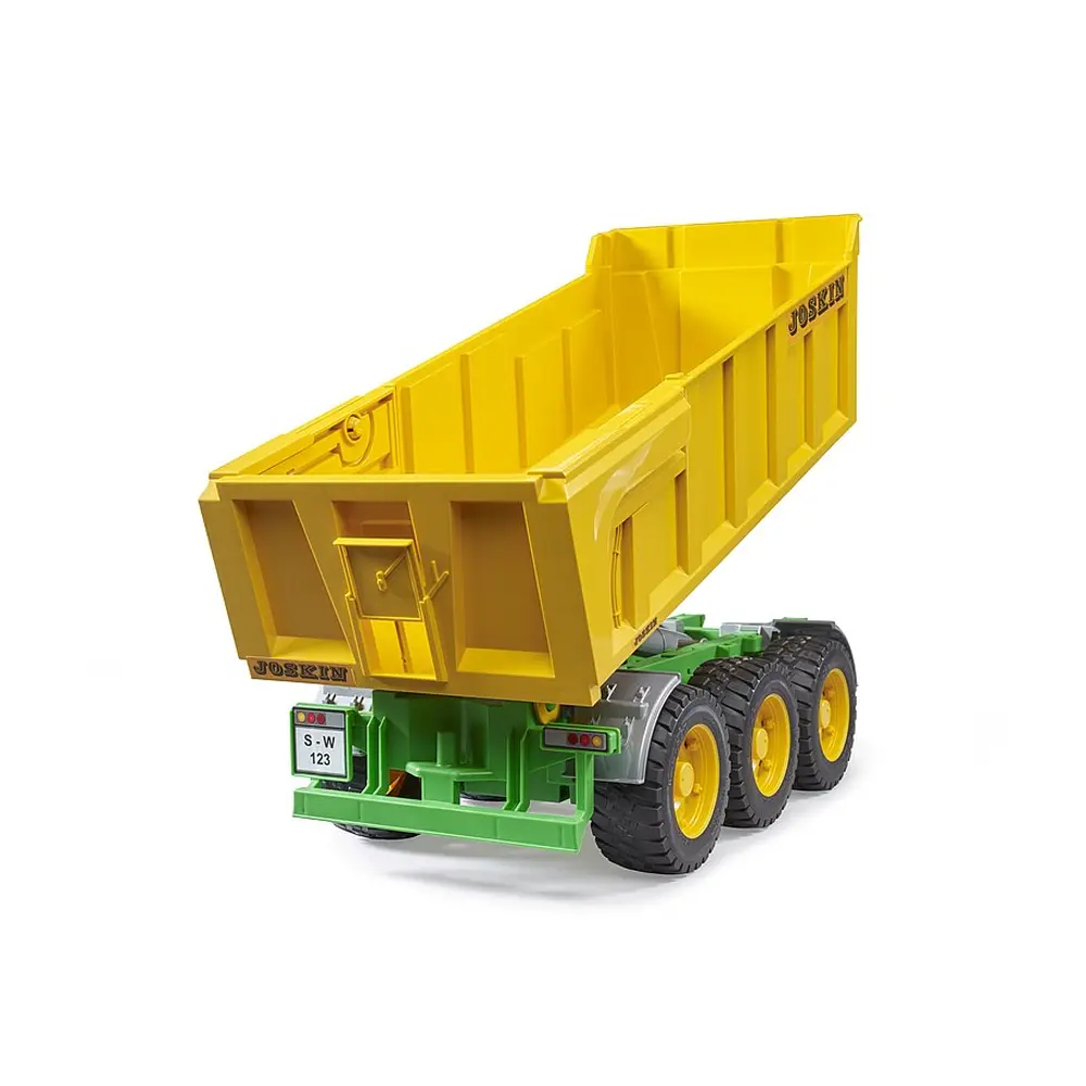 3-osovinski kiper Belgijskog proizvođača Joskin jedan je od najvećih i najtežih prikolica na tržištu. Dizajniran za teške opterećenje i transport u ekstremnim uvjetima, kao što su rad na podzemnim ili poljoprivrednim površinama, korištenjem na neravnim terenima, originali ovih “čudovišta” nose do 24 tona tereta ili do 29 kubnih metara. Impresivni BRUDER model razvijen je na isti način kao i izvorni serijski “Trans-SPACE” i ima sklopivi i zaključanog vodića s automatskim otvorom vrata prtljažnika u skladu s našim sloganom “baš kao i stvarna prikolica”. Šasija s 3 osovine nadoknađuje sve hrapavosti terena. Ova prikolica prikolica idealna je za nove generacije traktora TOP profi serije koji su dostupni od jeseni 2004. i već su oduševili mnoge kupce. Ali čak i traktori Profi serija i naš Unimogs (s adapterom za spajanje) vrlo su prikladni za vuču vozila.