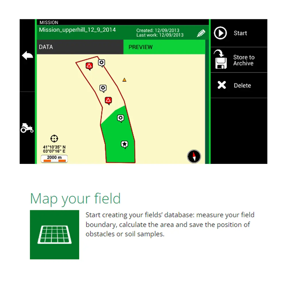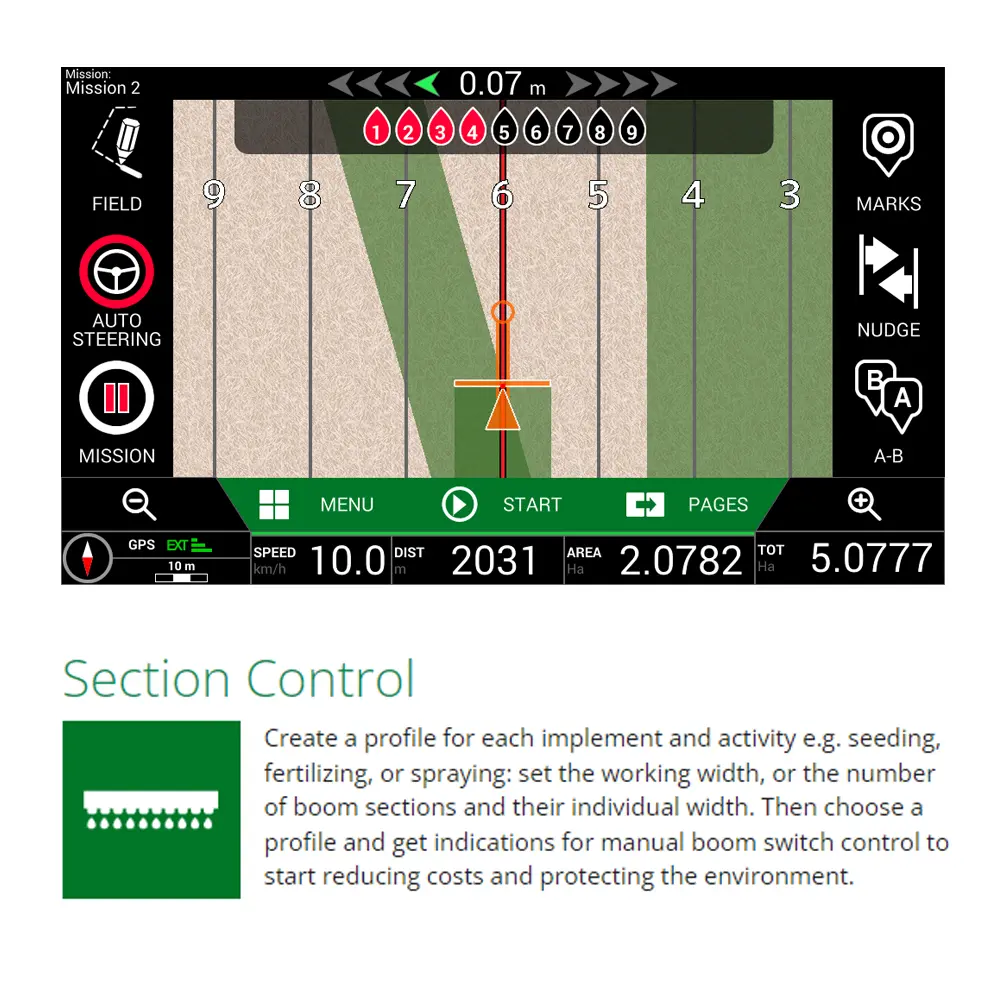 - Section control (uključivanje/isključivanje sekcija na prskalici)