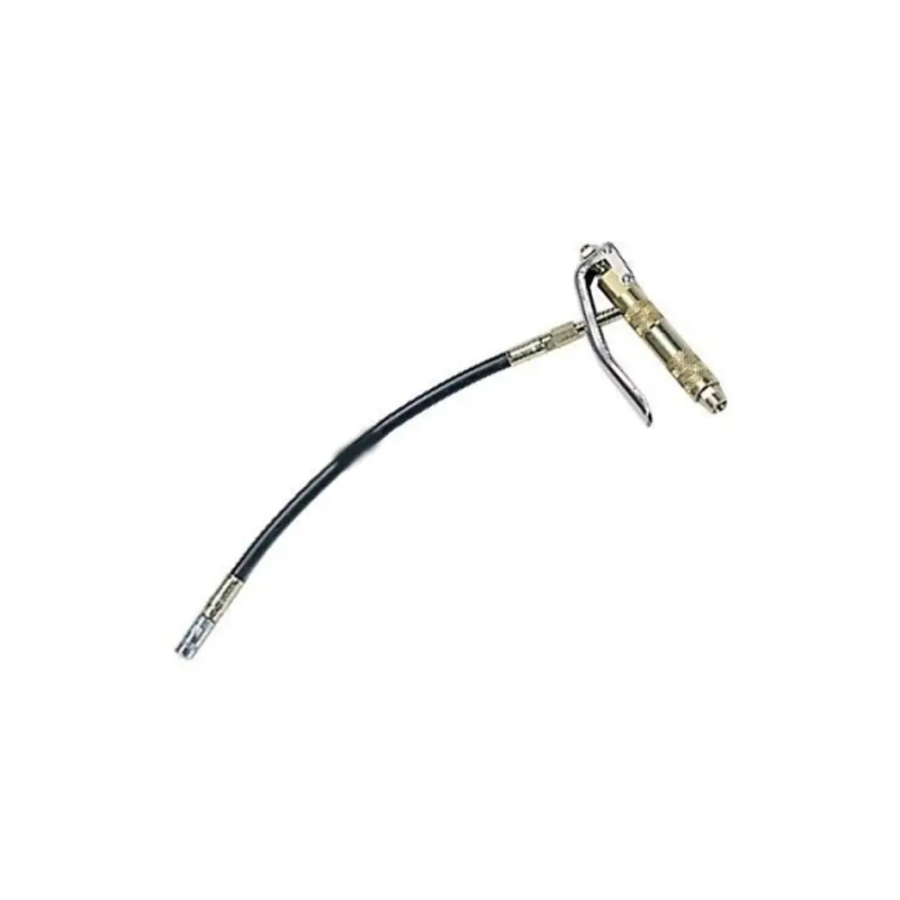 Pištolj za mast s fleksibilnom cijevi, dužine 400mm i glavom za podmazivanje s četiri čelične čeljusti. Ulazni priključak F1/4″ s okretnim zglobom.