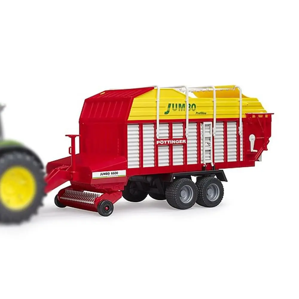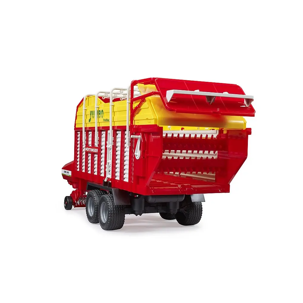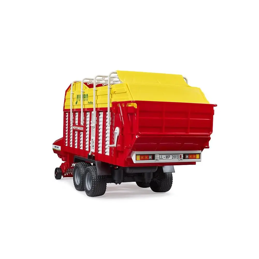 Valjak od krmne prikolice Pöttinger pomiče se tijekom putovanja. Stepenica se može otvoriti, ljestve preklopiti i krov stezaljke i konopi (uključeno) može se skinuti. Valjci za istakanje su vođeni s polugom. Držač za noge osigurava stabilnost i gume daju potpunu sliku. Krmna prikolica Pöttinger je pogodna za sve traktore iz Profi serija (nije uključen).
