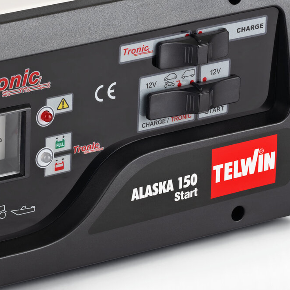 Linija ALASKA punjača i startera akumulatora sa elektronskom kontrolom struje punjenja, automatskog prekida i ponovnog pokretanja (TRONIC), za napajanje i održavanje napunjenosti olovnih akumulatora s naponom od 12 V za motocikle, osobne automobile, kombija i kamiona. Mogućnosti punjenja: normalno CHARGE, BOOST brzo punjenje, automatski TRONIC punjenje i održavanje WET, GEL, AGM: SPIRAL, ìMF, START-STOP akumulatora. Izbor izlaznog napona, napona punjenja, start- zaštita od preopterećenja i zamjene polariteta.